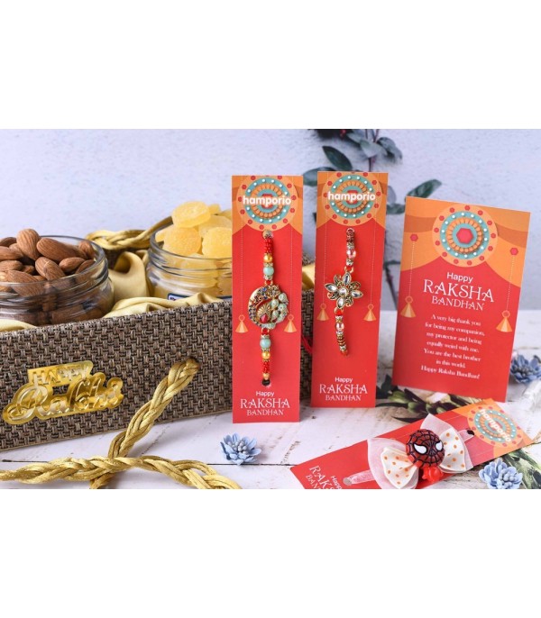 Featuring two stunningly handcrafted Rakhis and many other Rakhi