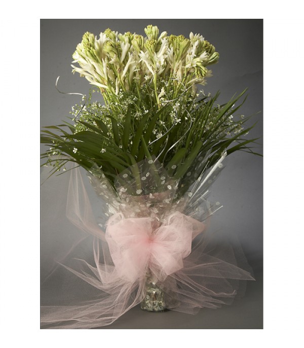 Bunch of 30 Tube Roses With Lots of Green Fillers and Net Packing