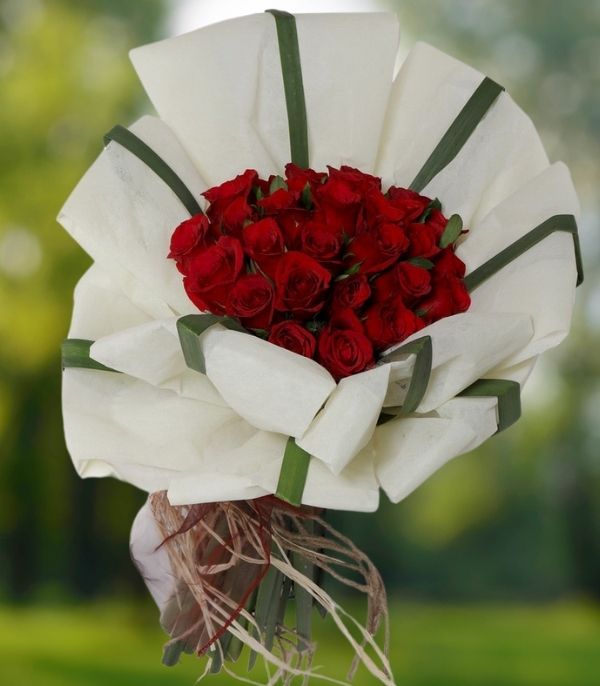 25 Red Roses Bunch Packed With Rafia.