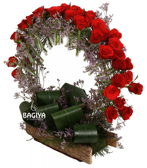 40 Red Roses in Test Tube hang of wire base and basket ,beautifully designed.